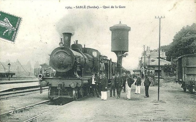 Grue à eau à réservoir en gare de Sablé lors d'un arrêt d'une 220 série 500.